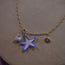 Crochet Blue Starfish on Beaten Brass Chain